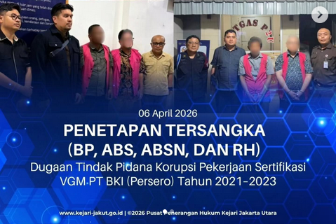 FAJAR METRO – Penyidik pada Kejaksaan Negeri Jakarta Utara telah menetapkan 4 (empat) orang tersangka BP, ABS, ABSN dan RH berdasarkan alat bukti yang cukup dalam perkara dugaan tindak pidana korupsi terkait pekerjaan pendukung pada penerbitan sertifikat VGM oleh PT BKI tahun 2021-2023, Senin (6/4/2026).