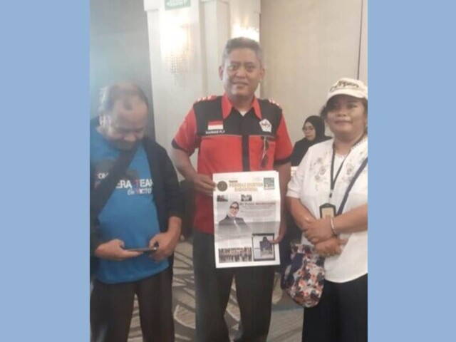 Mahmud Fly , Ketua Sepoi menghadiri acara Prescon Suara Rakyat yang menolak Amandemen IHR dan Pandemic diselenggarakan oleh Gus Ali Timur dkk di Hotel Acacia,Kramat Jakarta Pusat, Sabtu (19/7/25).
