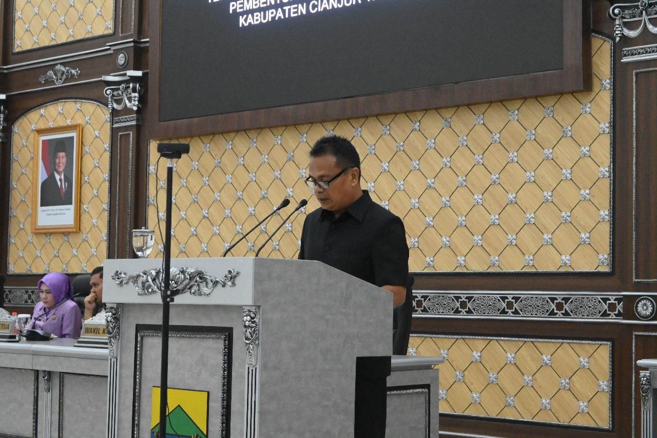 Wakil Bupati Cianjur, Abi Ramzi, menghadiri Rapat Paripurna DPRD Kabupaten Cianjur yang digelar di Gedung DPRD Cianjur, pada Senin (3/11/2025).