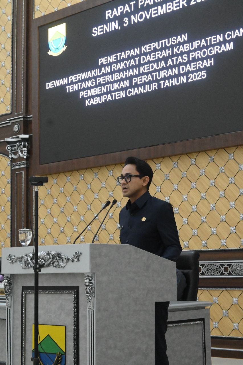 Rapat paripurna tersebut membahas dan menetapkan Keputusan Dewan Perwakilan Rakyat Daerah Kabupaten Cianjur tentang Perubahan Kedua atas Program Pembentukan Peraturan Daerah (Propemperda) Kabupaten Cianjur Tahun 2025.